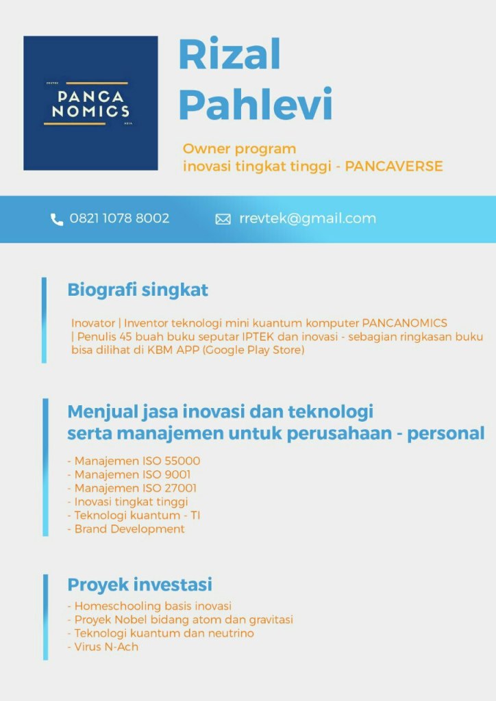 PANCAVERSE adalah salah satu program inovasi tingkat tinggi yang memiliki VISI agar pribumi menguasai peredaran dana teknologi global untuk pemerataan ekonomi dan menghilangkan batas antar Negara sehingga dapat berdaulat layaknya Negara di dalam Negara dengan berlandaskan IPTEK yang IMTAQ.